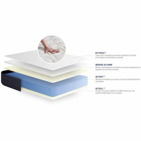 L’avis de notre expert: Grace aux 5 zones de confort et la mousse à mémoire de forme, le matelas Actimemo SLEEP épouse les formes de votre corps et soulage les points de pression. Les articulations sont soulagées et peuvent se reposer, tout comme la colonne vertébrale, dont l’alignement est préservé. La technologie Actifresh permet une parfaite aération pour un couchage sain hiver comme été.