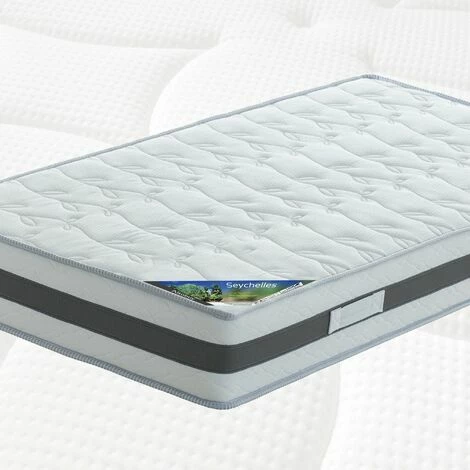 Mousse Aertech plus H:13,5 cm, densité 30 Kg/m3, Mousse à Mémoire H:5 cm, densité 43 Kg/m3, Housse supérieure et inférieure matelassée fixe composée de Tissu Stretch anti-acariens et hypoallergénique 100% polyester 180 g/m2, Rembourrage Thermoflex B 450 g/m2 (60% Coton, 40% polyester) et Bordage périmetral matelassé avec 4 poignées et bande aéeré 3D. Confort : Soutien ferme, accueil confortable – Hauteur 21 cm – GARANTIE 5 ANS.