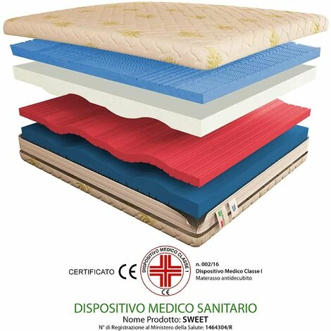 DISPOSITIF MEDICAL DE CLASSE 1 matelas déductible à 19% comme dépense de santé. Modèle doux. Grâce à la mousse à mémoire de forme dans la partie supérieure, le matelas Sweet est très confortable et permet un repos avec une portance totalement différenciée.