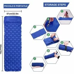 - Léger et portable: le poids de tapis de couchage est d’environ 530G et le volume équivaut à une bouteille d’eau minérale de 350ML. Vous n’inquiétez pas de la place dans votre sac à dos et pas de maux de dos en raison du poids élevé, très pratique à transporter. Taille du sac de rangement: 22 * 10 cm.