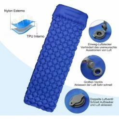 - Facile à gonfler et à dégonfler:Tapis de Couchage utilise une valve de gonflage à double couche.Il ne faut que 15 à 30 fois pour gonfler (gonfler par la bouche) et dégonfler rapidement, et il peut être plein de gaz en 2-3 minutes. Ouvrez la valve puis faites rouler doucement le tapis, il se dégonflera dans quelques secondes.