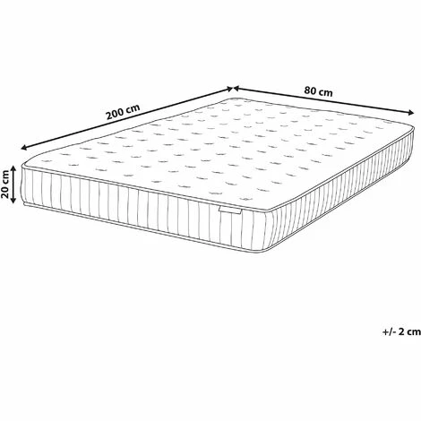 Informations supplémentaires: Le matelas à ressorts ensachés est idéal pour les personnes qui recherchent du meilleur confort. C’est une excellente solution pour les personnes souffrant de transpiration excessive et de personnes au poids élevé, car le matelas reprend sa forme initiale après pression., Le matelas possède les labels CertiPUR-US et STANDARD 100 OEKO-TEX, ce qui signifie qu’il est libre de toutes substances nocives.