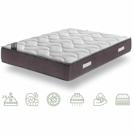 Matelasà mémoire de forme de 25 cm d’hauteur total qui incorpore dans le coutil des particules de ce dérivé du carbone: le graphène. Avec le graphène le matelas devient plus élastique, plus flexible et dissipe la chaleur qui s’accumule dans la surface du matelas, offrant un repos frais toute la nuit.