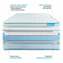 Le meilleur pour vous.Summum de notre gamme, ni trop moelleux ni trop ferme, le matelas BodyMax vous invite au confort avec un accueil moelleux et 7 zones de confort.Le matelas BodyMax offre un sommeil réparateur et régénérant par l’alliance des meilleures technologies, mousse à mémoire de forme, micro ressorts ensachés, mousse haute densité et hypersoft.Un matelas au confort équilibré, avec un soutien ferme combiné d’un accueil moelleux.Un matelas d’excellence.