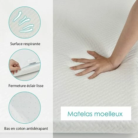 - ăHousse respirant et lavableăLe matelas de lit crĂ©e une surface de couchage confortable pour Ă©viter dâĂȘtre incommodĂ© par la chaleur. DotĂ© dâune fermeture Ă©clair lisse, la housse amovible peut ĂȘtre facilement retirĂ©e et lavĂ©e. La conception zippĂ©e maintient le surmatelas propre et prĂ©vient de la poussiĂšre. Par ailleurs, le fond antidĂ©rapant empĂȘche de glisser lorsque vous vous allongez.