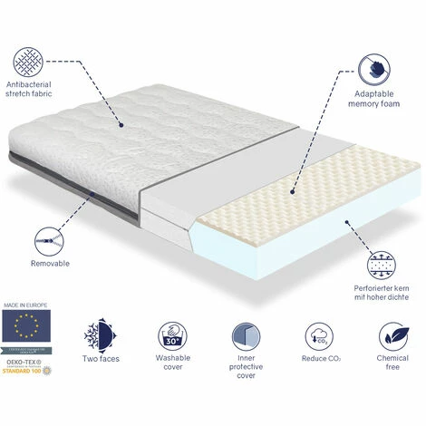 Ce matelas a été fabriqué à faible impact environnemental et sous les normes de qualité les plus élevées qui garantissent la fabrication sans substances nocives. Le repos sur notre bébé pendant la première étape de sa vie est primordial pour l’aider à grandir en bonne santé. C’est un matelas qui combine les avantages de la mousse à mémoire avec de la mousse de haute qualité pour offrir le meilleur confort ergonomique.
