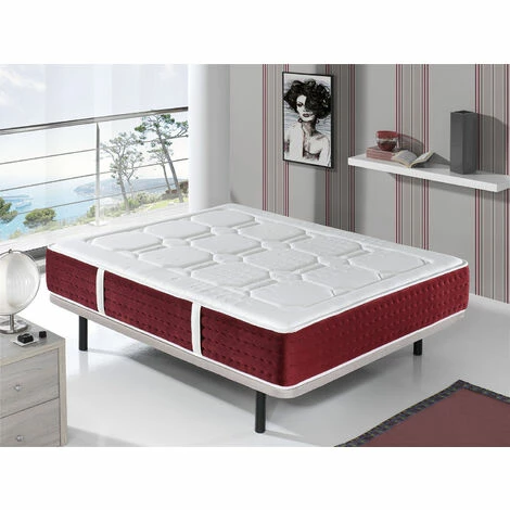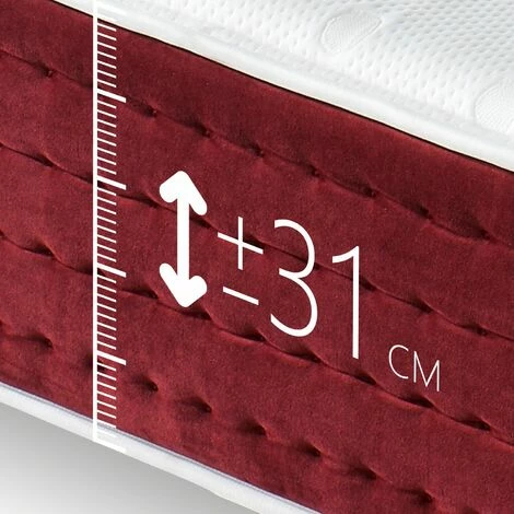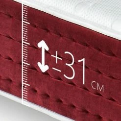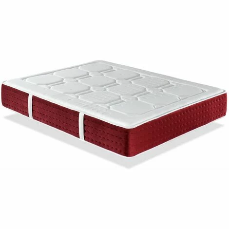 - Le côté du matelas est extrêmement doux au toucher velours. Finition dans les tons rouge bordeaux. Double cousu de sécurité pour assurer la durabilité. Il dispose de 4 poignées verticales qui facilitent la manipulation du matelas et lui donnent de l’élégance.
