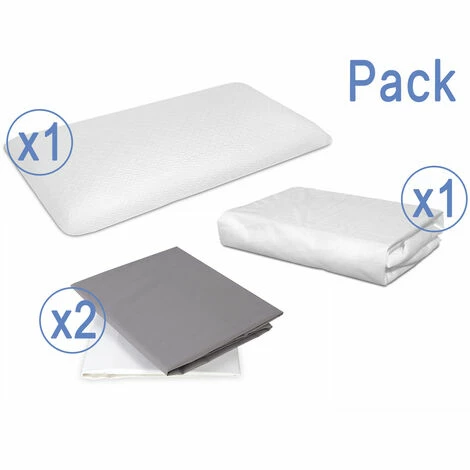 Nous aimons dormir et c’est pourquoi nous vous proposons notre pack économique. Produits de haute qualité et idéal pour les cadeaux. Pack contient : Deux draps housse 100% coton avec plus de 200 fils peignés et méticuleusement sélectionnés + Un oreiller jeunesse idéal pour la croissance puisqu’il s’adapte à la forme anatomique de la tête de notre petit + Un drap protecteur et imperméable pour ces nuits humides et une meilleure hygiène.