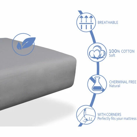 Le coton, d’origine naturelle, possède des caractéristiques exceptionnelles. Les tissus en coton permettent à l’air de circuler librement en favorisant la respiration naturelle de la peau et en la gardant exempte d’impuretés. C’est une matière hypoallergénique qui permet de prévenir les risques d’irritations, d’infections et d’allergies. Il est doux, résistant et durable au toucher. Ils résistent très bien au lavage continu en machine. Les fibres utilisées dans la fabrication de ce produit ont été méticuleusement sélectionnées, filées, tissées et finies pour obtenir des tissus pour draps d’une grande douceur et confort. Convient jusqu’à 20 cm de haut