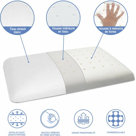 - [OREILLER À MÉMOIRE DE FORME ERGONOMIQUE, RESPIRANT]