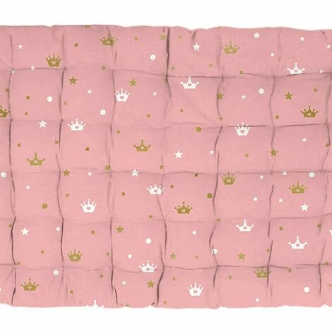 Créer une décoration de conte de fée originale et pleine de confort dans la chambre de la petite grâce au matelas de sol Danseuse étoile tout rose avec impression dorée.