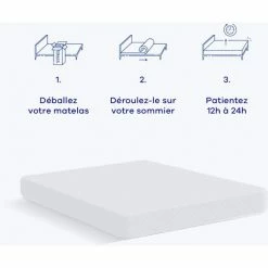Ce matelas d’une épaisseur totale de 20 cm, avec sa couche de mousse viscoélastique de 5 cm et d’une densité de 85 kg/m3 vous offrira tout le repos dont vous avez besoin pour une journée pleine d’énergie. L’âme du matelas est composée de mousse polyuréthane d’une densité de 45 kg/m3 pour un soutien de haute résilience. Par ailleurs, son coutil Coolsoft vous assurera chaque nuit une agréable sensation de fraîcheur.