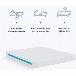 Sur un matelas d’une épaisseur totale de 16 cm, une couche de mousse viscoélastique de 3 cm et d’une densité de 75 kg/m3 vous offrira un confort essentiel. L’âme du matelas est composée de mousse polyuréthane d’une densité de 45 kg/m3 pour un soutien de haute résilience. Sur chaque côté latéraux, une bande de tissus 3D assure une aération optimale. Par ailleurs, son coutil Coolsoft vous assurera chaque nuit une agréable sensation de fraîcheur.