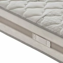Le matelas à ressorts ensaché est un produit né de l’union de ressorts en acier au phosphate de carbone, une couche de surface en mousse à mémoire avec une structure cellulaire ouverte, avec une épaisseur de 5 cm et 9 zones différentes. Tandis que les ressorts supportent le poids du corps, la mousse à mémoire s’adapte à sa forme, offrant le meilleur type de repos possible sur un matelas de ce type. L’épaisseur totale du matelas est de 25 cm. Les ressorts ont une hauteur de 14 cm et sont enfermés dans une boîte de 3 cm d’épaisseur, tandis que le rembourrage en fibre de polyuréthane hypoallergénique a une épaisseur d’environ 1 cm.