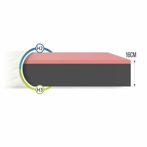 ORSA est un matelas en blocs de mousse Resilience Black avec une structure cellulaire non uniforme. Il augmente l’élasticité et la résistance du matelas et a un effet positif sur sa ventilation. La mousse utilisée soutient parfaitement le corps sur toute sa longueur. De la mousse visco avec une fonction de mémoire de forme a été ajoutée pour améliorer le confort général d’utilisation . La couche sous l’influence de la pression et de la chaleur permet à la colonne vertébrale de se reposer naturellement pendant le sommeil.