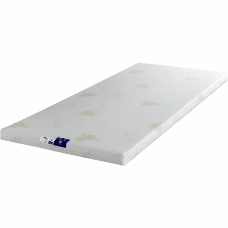 Déhoussable Housse Lavable à 30¡ à l’Aloe Vera 100% Mousse à mémoire de Forme de densité 55 Kg/m3 – Hauteur Totale 4 cm – Garanti 5 ans – Face c™té matelas Antidérapante – Déhoussable et Housse à l’Aloé Vera Lavable à 30 ¡- L’Aloe Vera est anti-inflammatoire, fongifuge, antibiotique et régénérateur – Tissu Strech 3D Hyper Ventilé – Traité anti-acariens, anti-bactériens, antifongique et hypoallergénique – La colonne vertébrale se trouve en parfait équilibre