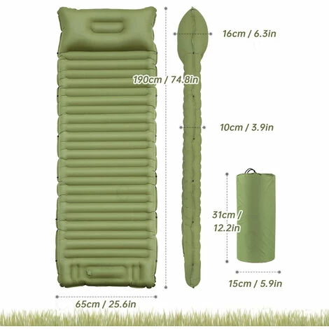 Imperméable, résistant à l’usure, durable : le matelas auto-gonflant est fabriqué en tissu de nylon imperméable et résistant aux déchirures, qui est stable et solide et peut supporter jusqu’à 200 kg. Le matelas auto-gonflant de camping mesure 10 cm d’épaisseur et peut être utilisé directement sur le sol sans se soucier des maux de dos causés par les rochers inégaux, vous protégeant ainsi des sols humides.