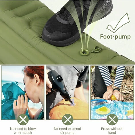 Gonflage et dégonflage rapide en 1 minute – Plus besoin de mains, de bouche ou de pompe pour gonfler, ce qui permet d’économiser du temps et des efforts. Gardez votre pied sur la pompe à air intégrée jusqu’à ce qu’elle se remplisse d’air, jusqu’à 1 minute ! Remarque : conception à double valve, la valve de dégonflage du matelas de camping doit être fermée lors du gonflage.