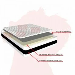 Le matelas est multicouche, combinaison de mémoire de forme et mousse ergonomique 25 kg/m3. La mousse ergonomique de polyuréthane peut être utilisée pour produire la structure interne (également appelée « solide ») d’un matelas simple, ou elle peut être la base de support pour les matelas avec une ou plusieurs couches. La principale caractéristique des matelas fabriqués avec des mousses de polyuréthane est leur capacité à faire face à différents types de pression sans subir de déformations majeures. L’élasticité et la résilience qui les distinguent leur permettent de reprendre leur forme initiale malgré la forte fatigue subie.