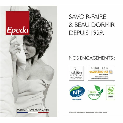 – Coutil 55 % polyester et 45% viscose traité anti acariens et anti bactérien pour une hygiène durable du coutil.