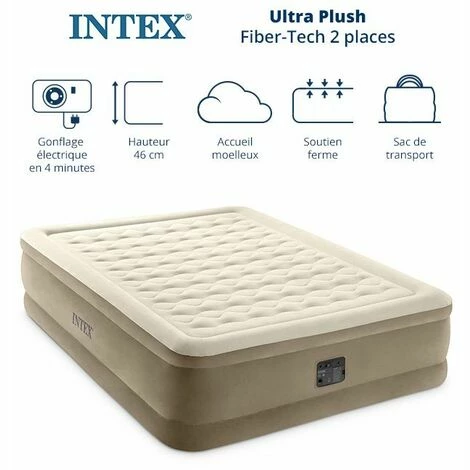 Dimensions: 203 x 152 x 46 cmPoids: 9kgPourvu de la technologie Fiber-TechFlocage doux pour plus de confortGonfleur électrique intégré pour gonfler et dégonfler rapidement votre matelas