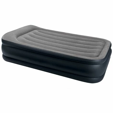 Matrelas gonflable 2 personnes Deluxe Rest Bed Intex. Un matelas vous apportant confort et fermeté ! Matelas + sommier 2 en 1. Gonfleur électrique intégré (220V) : gonflage et dégonflage rapides (+/- 3 min). Structure Fiber Tech : + solide, + léger, + confortable. Sac de rangement inclus. Flocage sur le dessus. Matière : vinyle. Dimensions : 152 x 203 x 42 cm. Aussi haut qu’un vrai lit !
