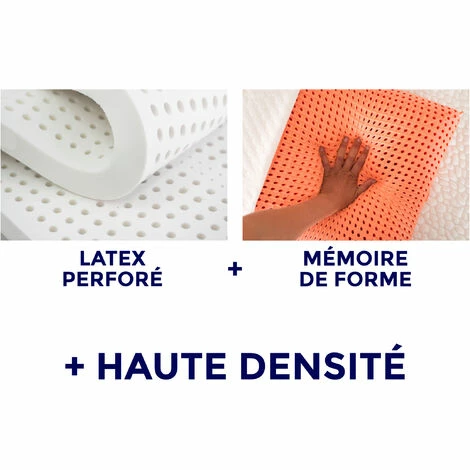 Dans ce matelas, le latex et la mémoire de forme vont travailler ensemble. Le maintien sera procuré par la mémoire de forme et la chaleur sera évacuée naturellement par le latex.