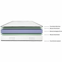- Système multicouche de fibres et de visco : 5 couches qui assurent un meilleur repos et grand confort.