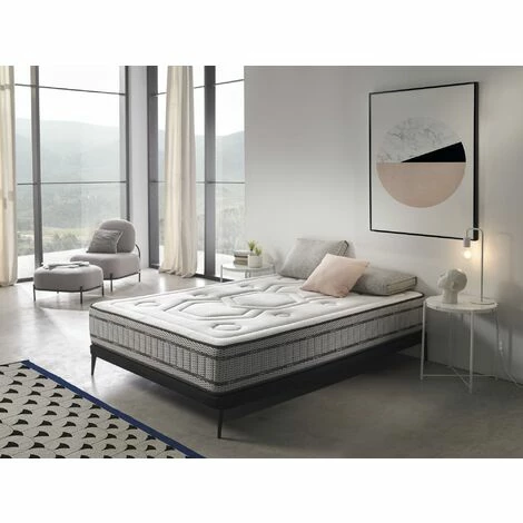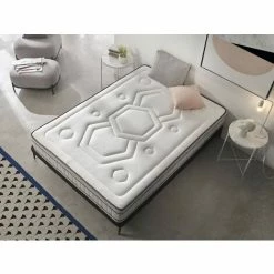 - Noyau de ressorts ensachés : Un total de 702 ressorts indépendants (pour la mesure de 200 x 200 cm) qui offrent une adaptabilité personnalisée à chaque zone du matelas.