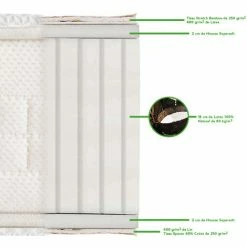 - Âme intérieure du matelas (certifiée naturelle) : 18 cm de latex 100% naturel Bio de 80 kg/m³