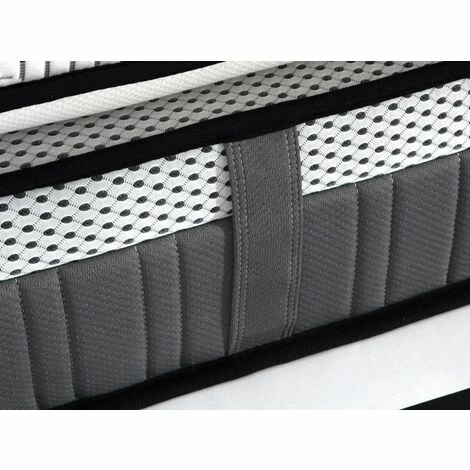 En surface, une épaisse couche de mousse adaptative apporte un effet surmatelas pour un accueil moelleux et très confortable. Cet accueil moelleux favorise une bonne circulation sanguine et évite les engourdissements au réveil. Le tissu 3D respirant de la platebande et le revêtement en polyester hypoallergénique du coutil assurent une parfaite ventilation du matelas. Équipé de quatre poignées, le matelas est facile à manipuler.