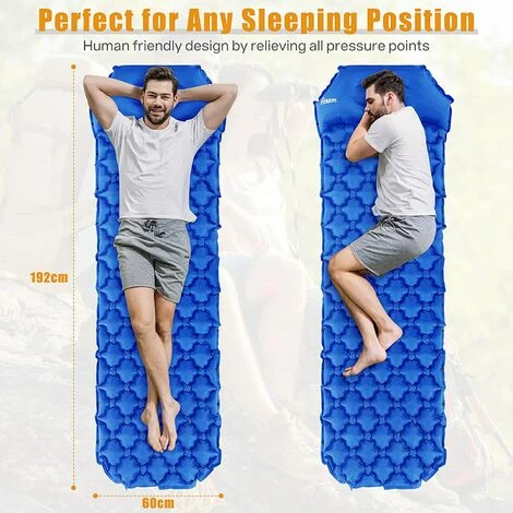 Tapis de camping portable : la taille est de 197 x 64 x 6 cm après gonflage (27 x 14 x 14 cm une fois plié), le poids est d’environ 740 g, la charge maximale est de 100 kg, le sac à dos est très pratique à transporter, adapté aux activités de plein air telles que l’alpinisme, le vélo ou la randonnée.