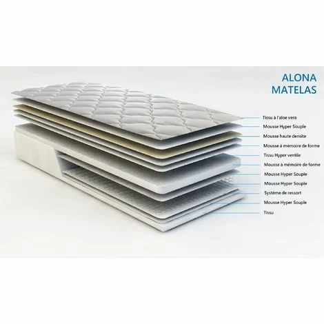 · Faces Dormeur : 1,5 cm de mousse profilee a Haute Ventilation pour Maximiser le Confort + coutil en tissu 3D pour la bonne Respiration du noyau matelasse Air System.