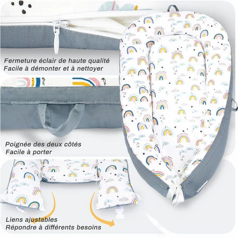 [PLUS ĂPAIS QUE LES COCONS TRADITIONNELS] – les bords stables du nid Ă cĂąlins empĂȘchent les nouveau-nĂ©s de tomber. Dans le lit d’appoint, le lit des parents ou sur le canapĂ©, votre enfant est en sĂ©curitĂ© et protĂ©gĂ© dans le nid bĂ©bĂ©. [UN ENDROIT SĂR] – notre coton est certifiĂ© OEKO-TEX Standard 100 (IW 00180). Le coton respirant et le rembourrage anti-allergique assurent un confort de sommeil. [CRĂEZ UN ENVIRONNEMENT COSY] – Couleurs intĂ©ressantes, adaptĂ©es aux enfants et Ă la mode. Le cocon pour bĂ©bĂ© est de taille optimale, enveloppera votre enfant et vous fera vous sentir en sĂ©curitĂ©. La largeur du cocon peut ĂȘtre ajustĂ©e Ă l’aide d’un cordon en coton. 70 cm de long – vous pouvez desserrer les cordes et gagner plus d’espace – jusqu’Ă 90 cm. [PEUT ETRE UTILISE A N’IMPORTE QUEL ENDROIT] – utilisez le nid pour bĂ©bĂ© portable pour le lit, le lit, le lit des parents, le berceau, un canapĂ© sur le canapĂ©, un lit de voyage, une poussette – rĂ©duction, un matelas Ă langer ou un oreiller pour allaitement. [FAIT Ă LA MAIN, COUTĂ DU COEUR] – Le cocon fait Ă la main est idĂ©al comme cadeau pour un baptĂȘme ou un anniversaire. Visuellement, les pare-chocs s’adaptent Ă chaque chambre d’enfant et dĂ©corent chaque lit bĂ©bĂ© comme une dĂ©coration.