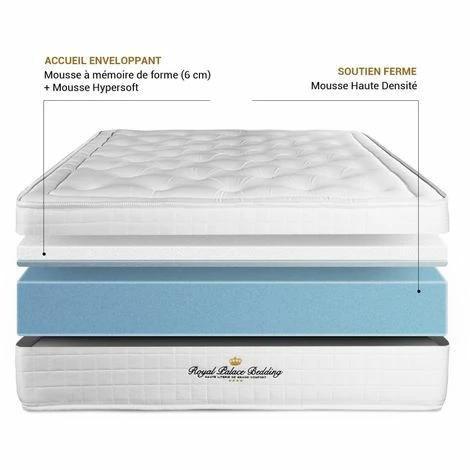 Le matelas Buckingham bénéficie d’une mousse à mémoire de forme maxi épaisseur. Avec un soutien ferme, son accueil enveloppant s’adapte à votre morphologie et allège les points de pression. Ses composants de très haute qualité vous apporte confort et longévité.