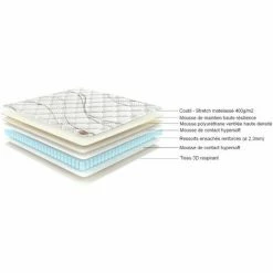 Conditionnement : matelas enroulé et compressé pour des mesures d’hygiène et de transport. Attendre maximum 48h pour que le matelas reprenne sa forme initiale. Traitement : SANITIZED garantissant la non-présence de substances nocives pour la santé. anti-acariens / anti-bactérien / Anti-moisissures.