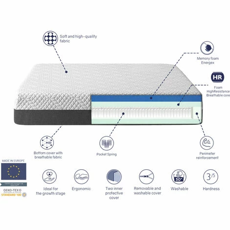 Ce modèle est un matelas à housse amovible. Il est doté d’une couverture extérieure et de deux couvertures intérieures, toutes amovibles et lavables à 30 degrés pour garantir une hygiène élevée.