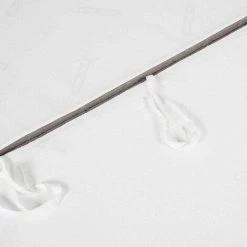– Couleurs tissu : dessus : gris clair, dessous blanc, périmètre : gris foncé, ganse de couture : bleu céleste