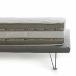 STRUCTURE – Matelas amovible, orthopédique, climatisé et ergonomique structuré sur trois couches – À l’intérieur, il est composé de : Memory Foam, un matériau viscoélastique, doux et confortable en mousse de polyuréthane dense qui s’adapte et soutient la forme de la personne – Gel Waterfoam, une mousse viscoélastique de polyuréthane à capacité portante différenciée adaptée aux climats froids, elle maintient la température du matelas constante donnant ainsi une sensation de fraîcheur tout en rendant le produit respirant – La composition et la combinaison des matériaux rendent le matelas indéformable – Le revêtement extérieur est en fil anti-acariens et hypoallergénique entièrement déhoussable et lavable en machine jusqu’à 90° stérilisant le produit pour une hygiène maximale.