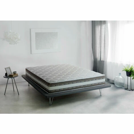 STRUCTURE – Matelas amovible, orthopédique, climatisé et ergonomique structuré sur trois couches – À l’intérieur, il est composé de : Memory Foam, un matériau viscoélastique, doux et confortable en mousse de polyuréthane dense qui s’adapte et soutient la forme de la personne – Gel Waterfoam, une mousse viscoélastique de polyuréthane à capacité portante différenciée adaptée aux climats froids, elle maintient la température du matelas constante donnant ainsi une sensation de fraîcheur tout en rendant le produit respirant – La composition et la combinaison des matériaux rendent le matelas indéformable – Le revêtement extérieur est en fil anti-acariens et hypoallergénique entièrement déhoussable et lavable en machine jusqu’à 90° stérilisant le produit pour une hygiène maximale.