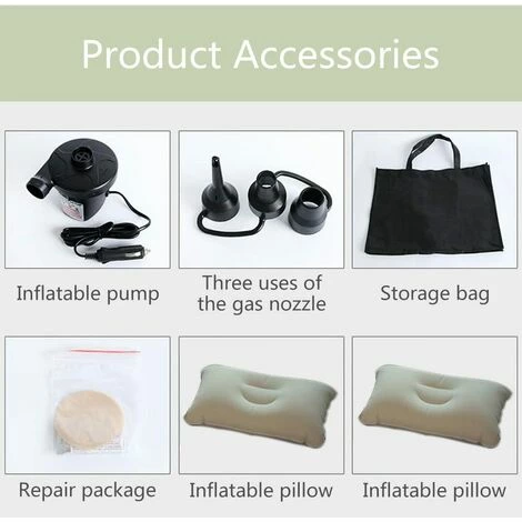 - Nécessités extérieures: apportez 2 oreillers (enfants, adultes ou animaux de compagnie), vous pouvez dormir en toute sécurité et confortablement sur ce lit gonflable pour voiture et profiter d’un temps de voyage relaxant.