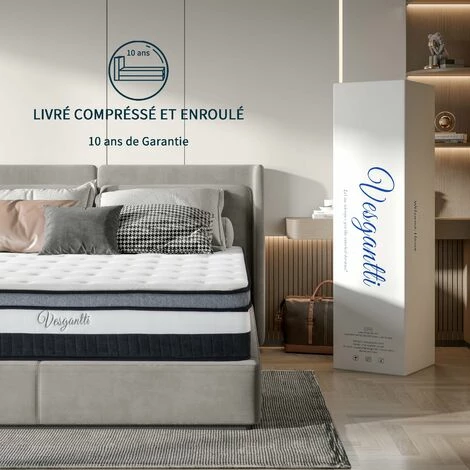 - ⭐【VESGANTTI SYSTEME DE CONFORT】Vesgantti matelas vous offre 7 zone de confort. il est composé par les mousse de message et les ressorts à poche en acier inoxydable de haute qualité, chaque ressort fonctionne de manière indépendante, fournit un support complet et moyen pour 7 zones de votre corps (pieds, jambes, hanches, reins, épaules, cou, tête). Il vous aide à ajuster et à corriger votre posture de sommeil.