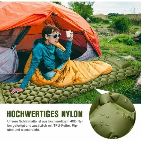 Pompe pied intgre innovant: le tapis de camping nouvellement dvelopp dispose une pompe pied intgre qui peut gonfler compltement le tapis de couchage en 1 2 minutes (la pompe pied peut šºtre gonfle 130 fois). Cest aussi trs pratique facile faire. Vous navez pas besoin de souffler ou de porter une pompe spare.